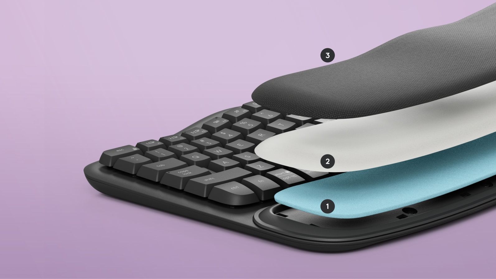 A wavy design places your hands, wrists and forearms in a natural typing position, feeling instantly intuitive and comfy all day long.