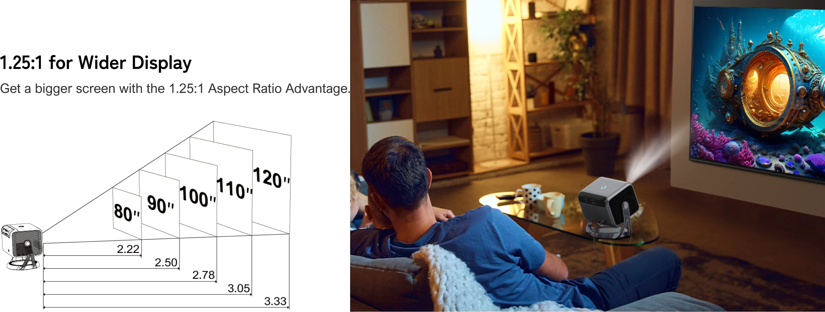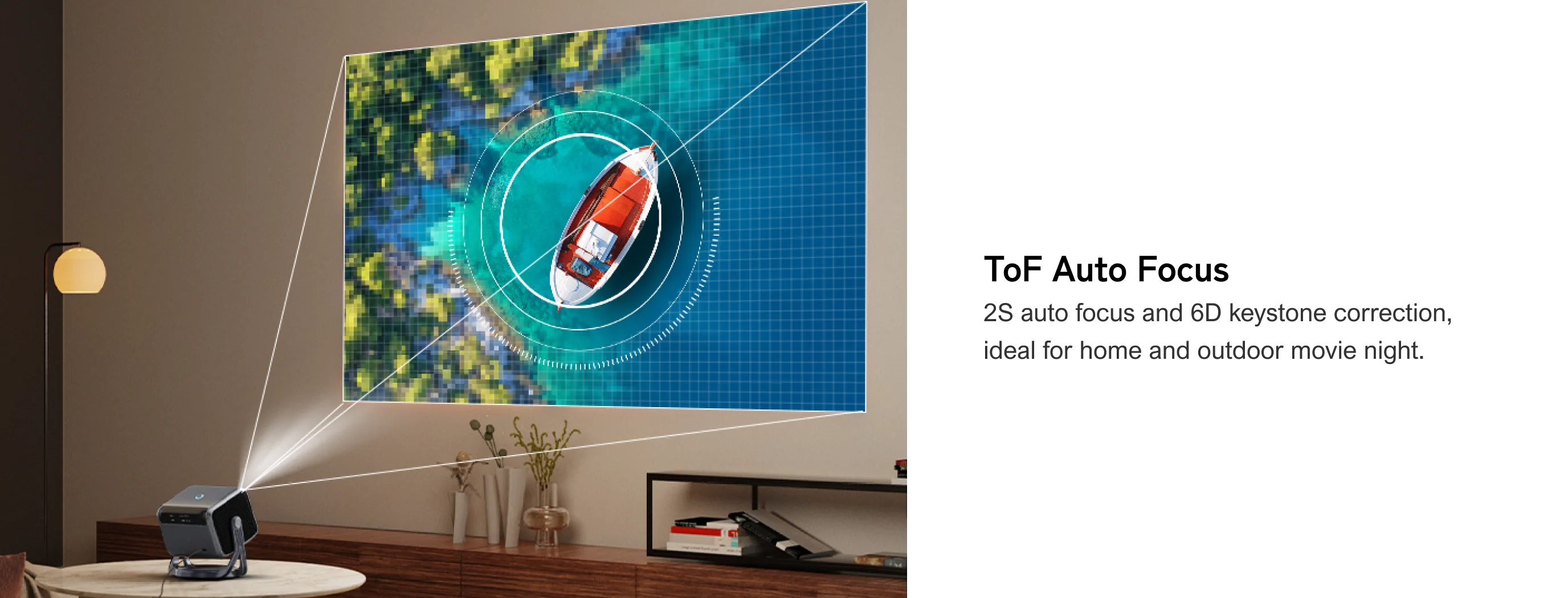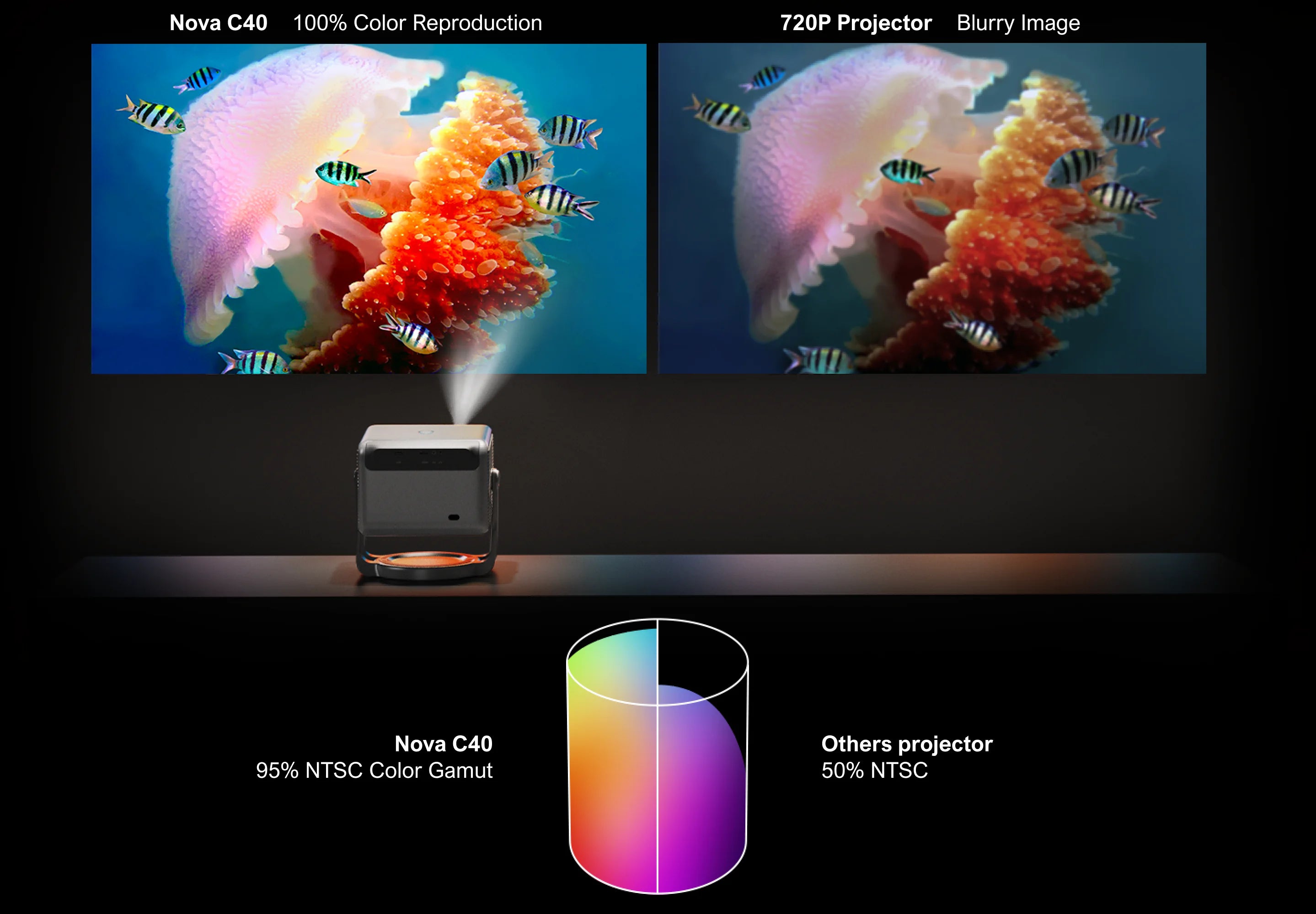 Enjoy massive entertainment on the go with Ultimea's Nova C40 Portble Projector - with Aspheric Lens Optical Technology to ensure image clarity even at elevated projection images. Enjoy crystal-clear clarity from any angle with AACLT™ (Adaptive Angle Correction Lens Technology).