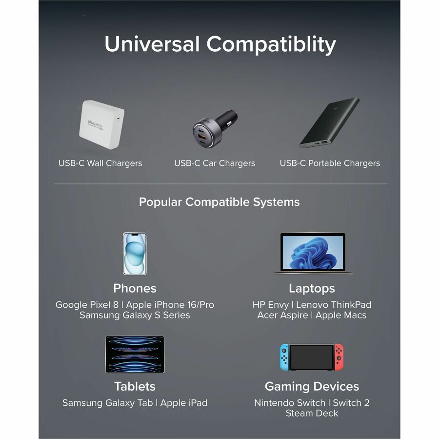 - Universal USB-C Charging: Works with any device that supports USB Power Delivery up to 240W, including MacBook Pro/Air, Dell XPS, Lenovo ThinkPad, iPad Pro, and Samsung Galaxy. This USB-C to USB-C design fits USB-C chargers, hubs, docks, and other PD-compliant gear